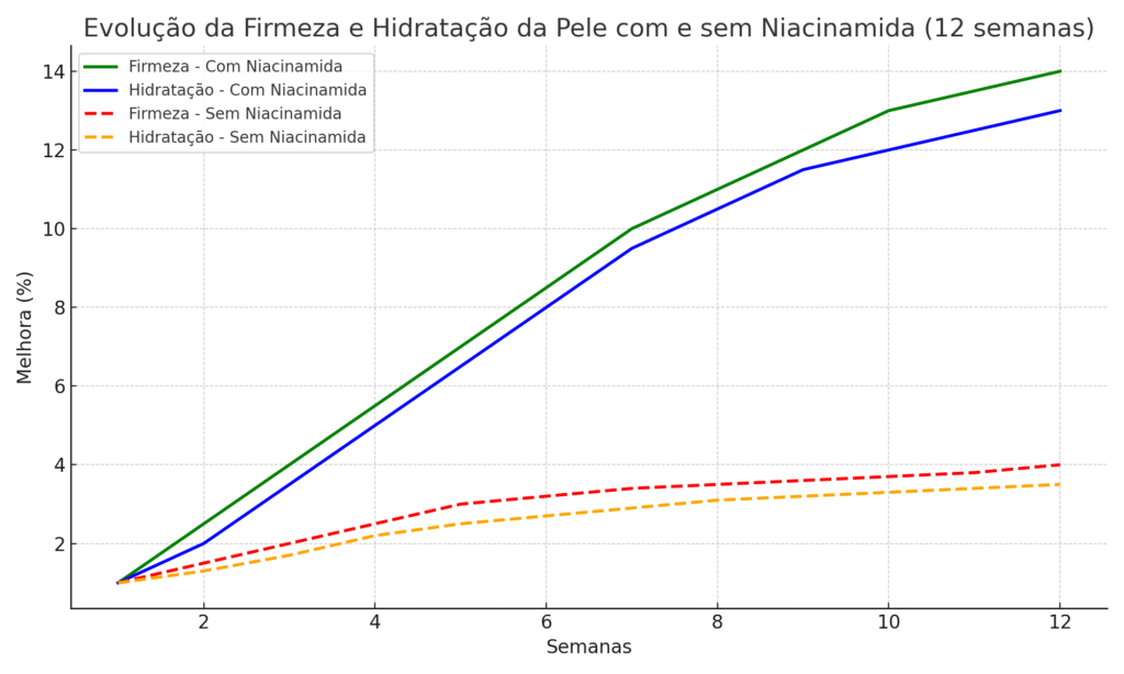 É possível ver claramente no gráfico resultados melhores na pele de quem usa a niacinamida